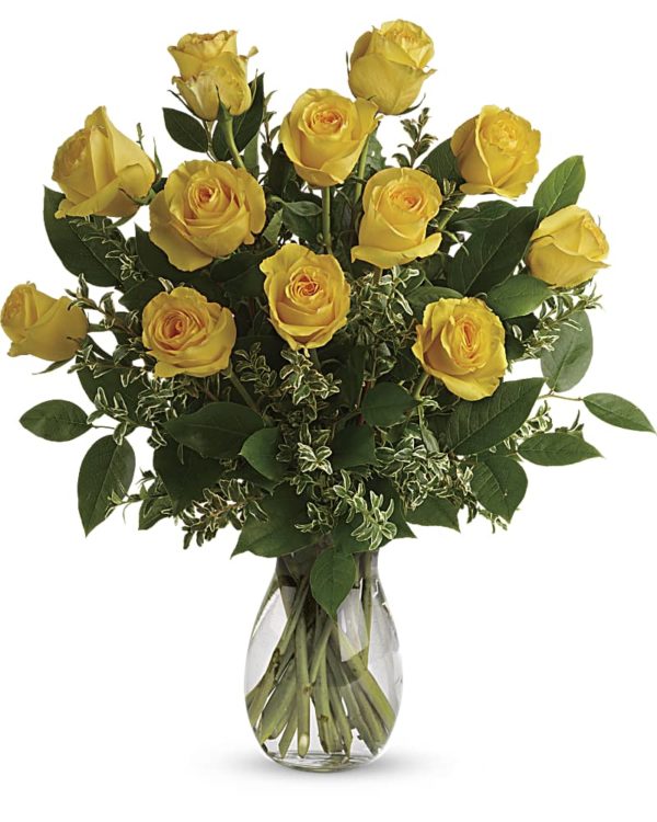 Your Love & Devotion delivered. Surprise your special one with this gorgeous arrangement of yellow roses available in one dozen, 18 roses or two dozen wonderful blooms.